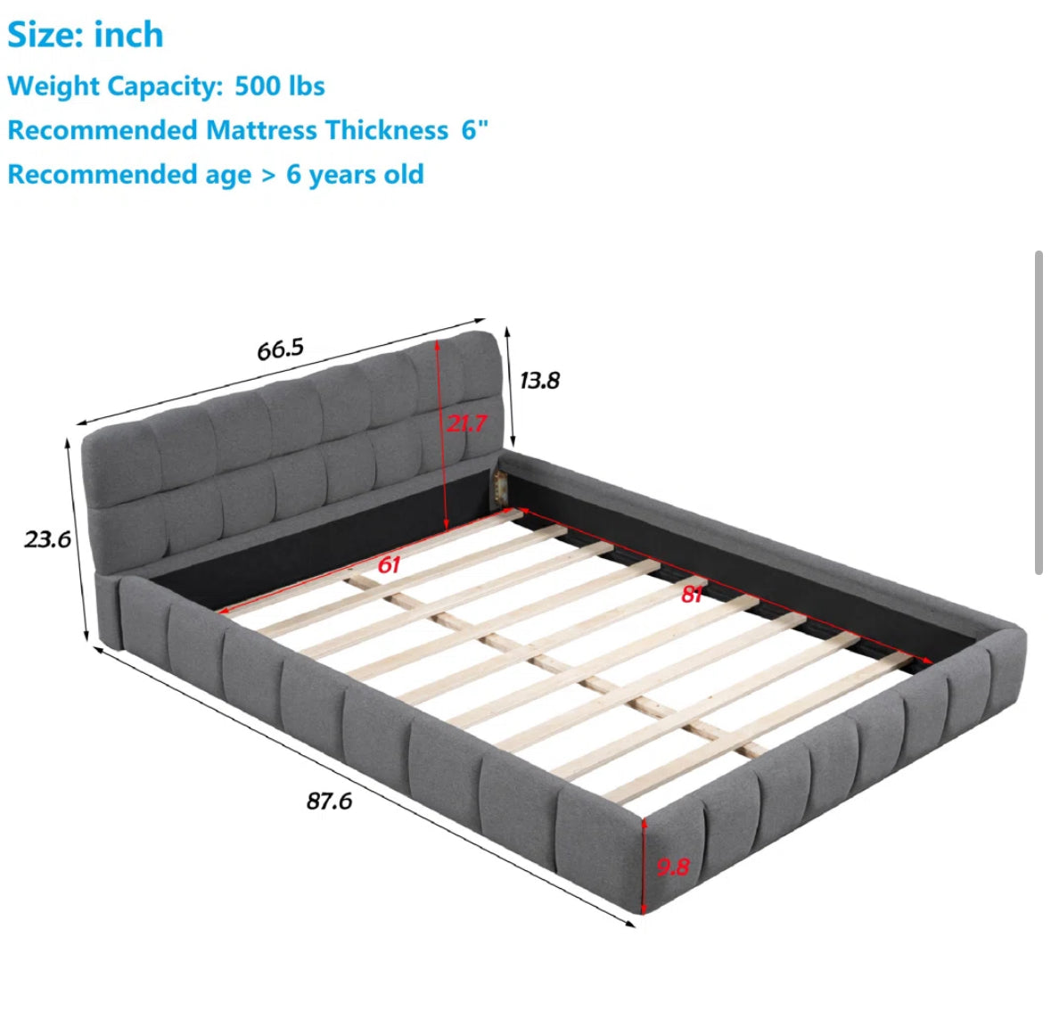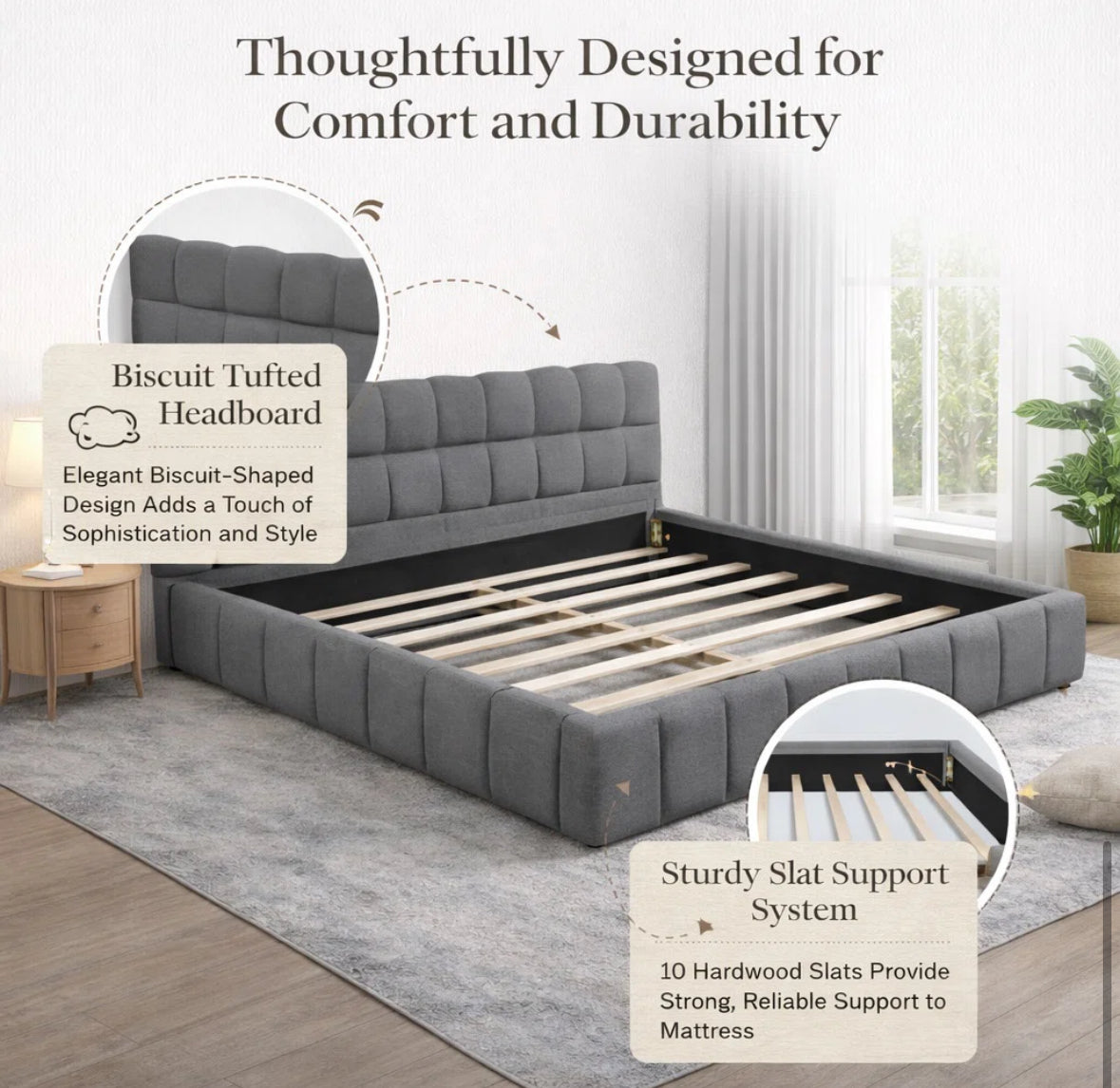 Bed - Queen Size Katence Elegant Linen Queen Platform Bed with Upholstered Headboard and Solid Frame Stability - WF1.3.26