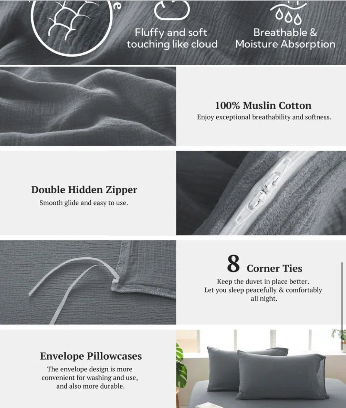 Bedding - King Size Mildly Muslin 100% Coton Duvet Cover Set - T&F 5.19.25