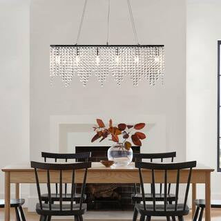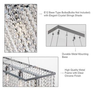 Chandelier - Sefinn Four 6-Light 32 in. Rectangular Chrome Finish Chandelier with Clear Crystal - WF11.7.25