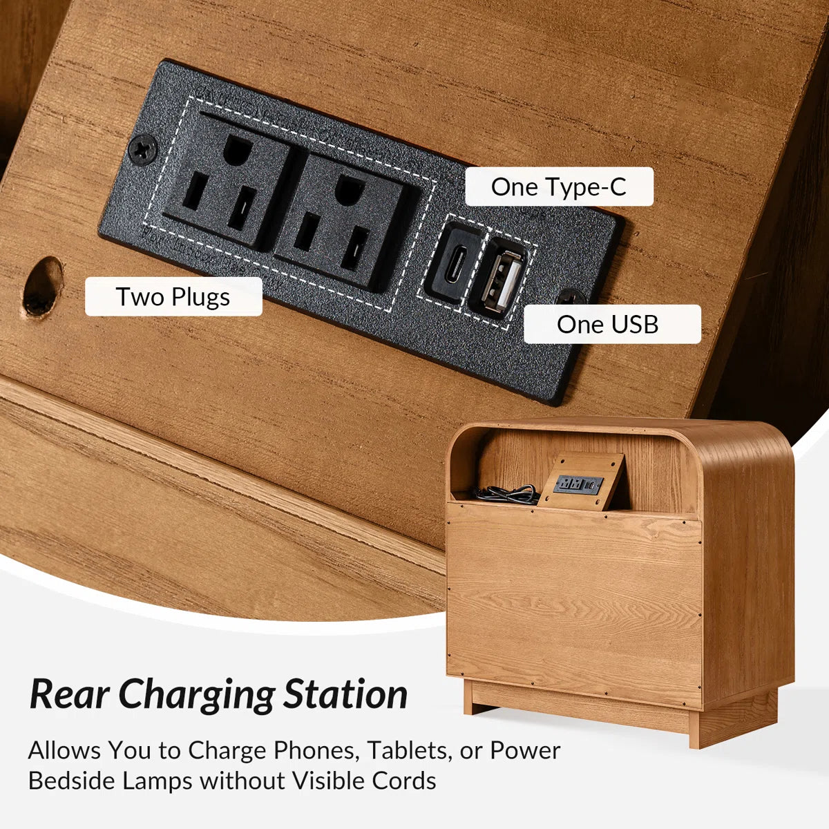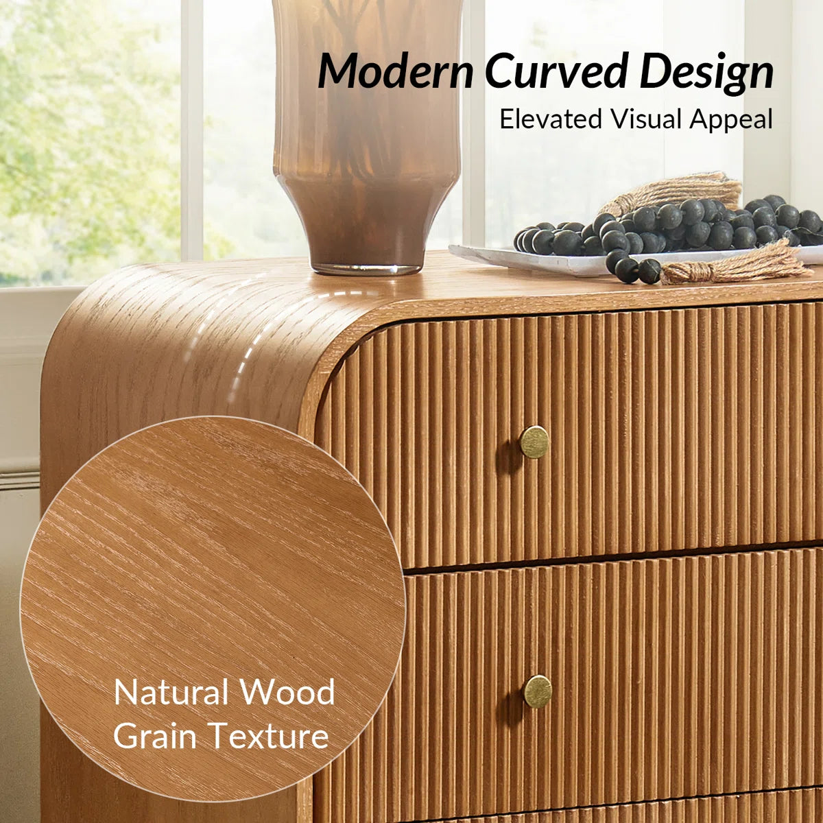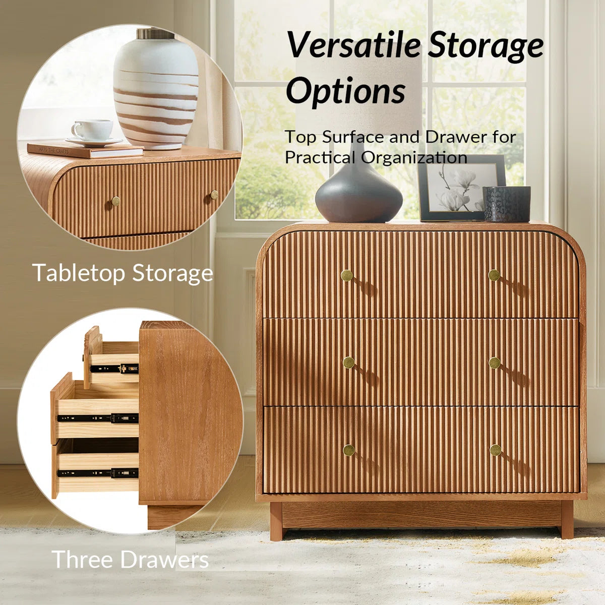 Dresser -3-Drawer Melisa Modern 28"W Fluted Curved with Charging Station - WF9.25.25