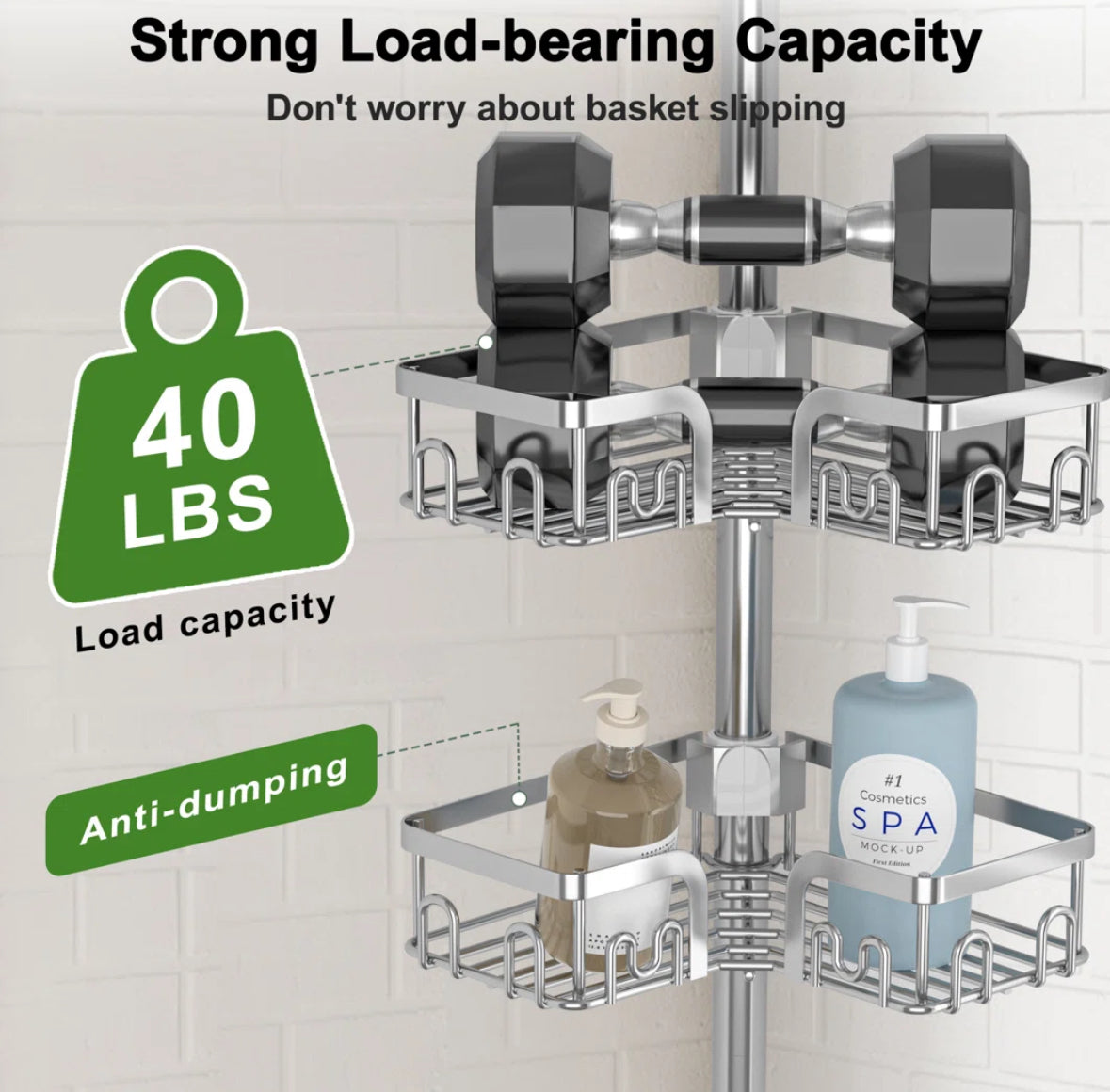 Bathroom Accessory - Saraih Stainless Steel Tension Corner Shower Caddy - WF12.4.25