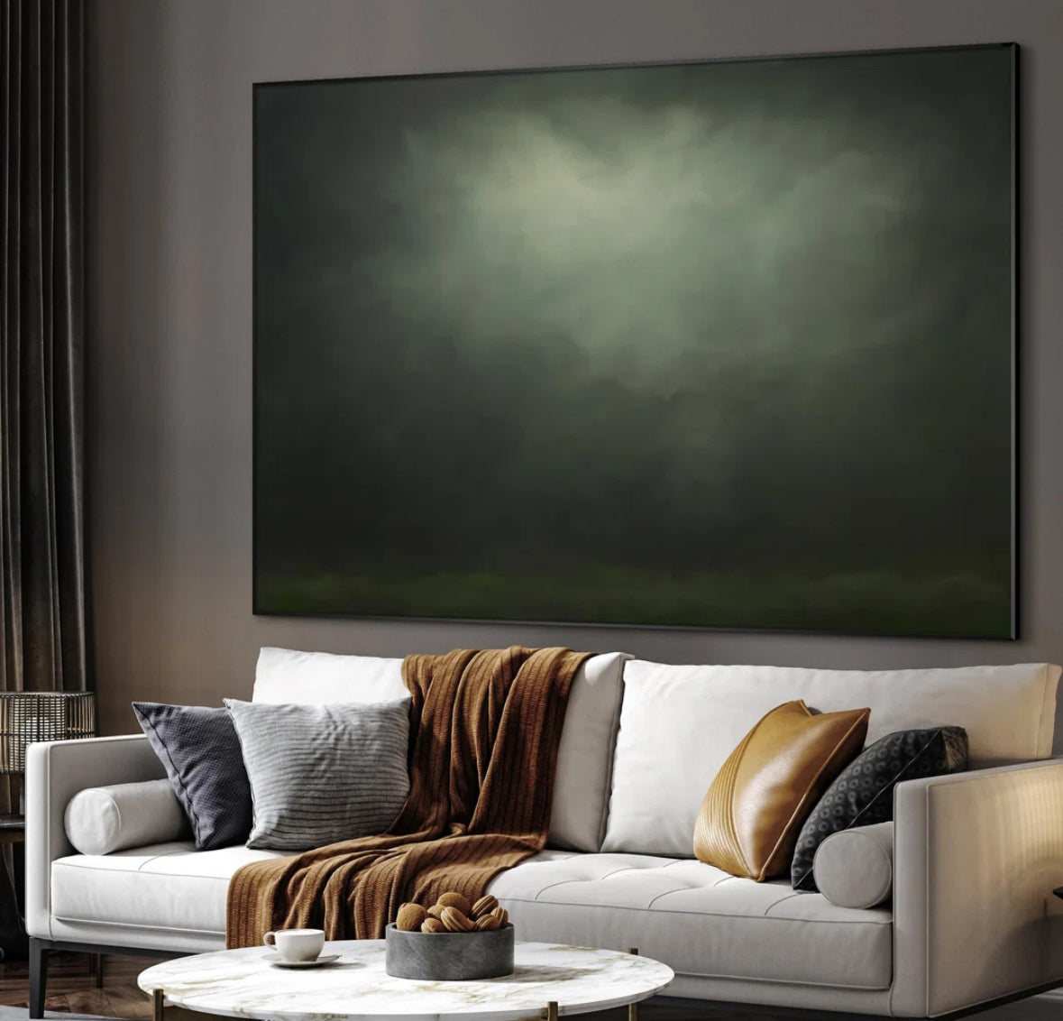 Wall Art - 46" x 60" Extra Large Framed Wall Art Moody Green Abstract Cloudscape - WF1.3.26